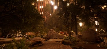 In the Anthropocene landscape, the sounds become more synthetic and unnatural. Ambisonics play a crucial role in this experience, encouraging the player to go off-path where possible. It explores the ways in which human curiosity interacts with different environments as they evolve, producing experimental sound that reflects the climate. The contrasting environments make for a fascinating comparison in results, as each playthrough is unique.
